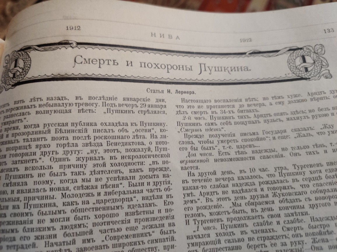 "Семьдесят пять лет назад, в последние январские дни, Петербург переживал небывалую тревогу. Под вечер 29 января по городу разнеслась волнующая весть: "Пушкин стрелялся, ранен и умирает"